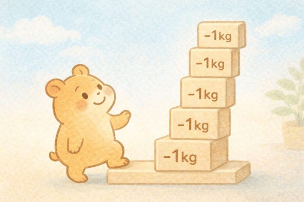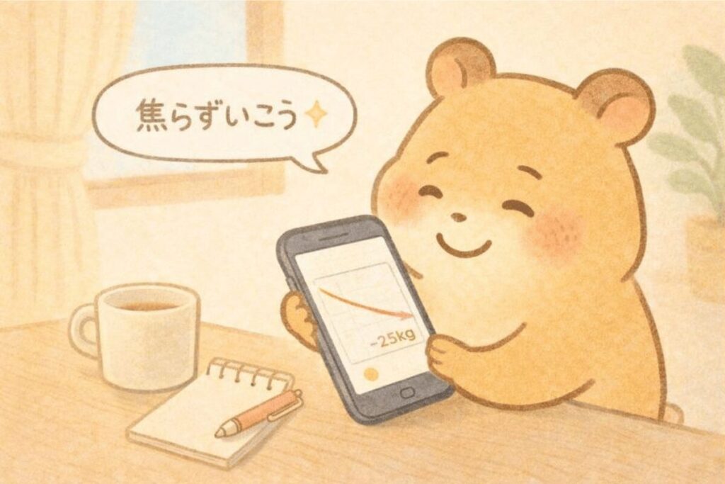 いきなり「-25kgを目指す!」と設定していたら、たぶん挫折していたことでしょう…